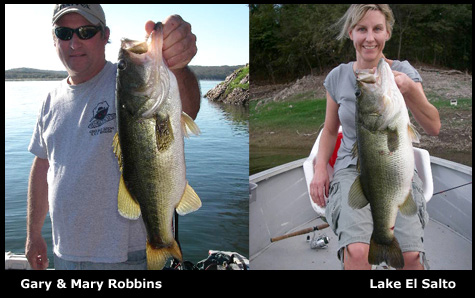 We really enjoyed the fun fishing at your lodge on Lake El Salto. Attached are some of the bigger bass caught by my wife and I. She used the all time favorite "leezards" especially watermelon; while I threw spinners and worms. Had a great time and our friends Kevin and Bruce enjoyed the good fishing and excellent hospitality too!